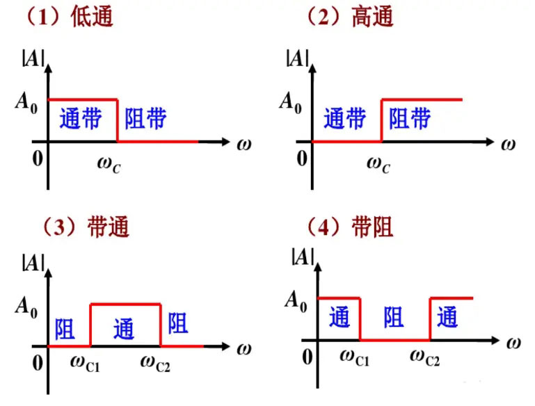 按通頻帶分類,有源濾波器可分為低通濾波器(LPF)、高通濾波器(HPF)、帶通濾波器(BPF)、帶阻濾波器(BEF)等,它們的聯系區別如圖所示: